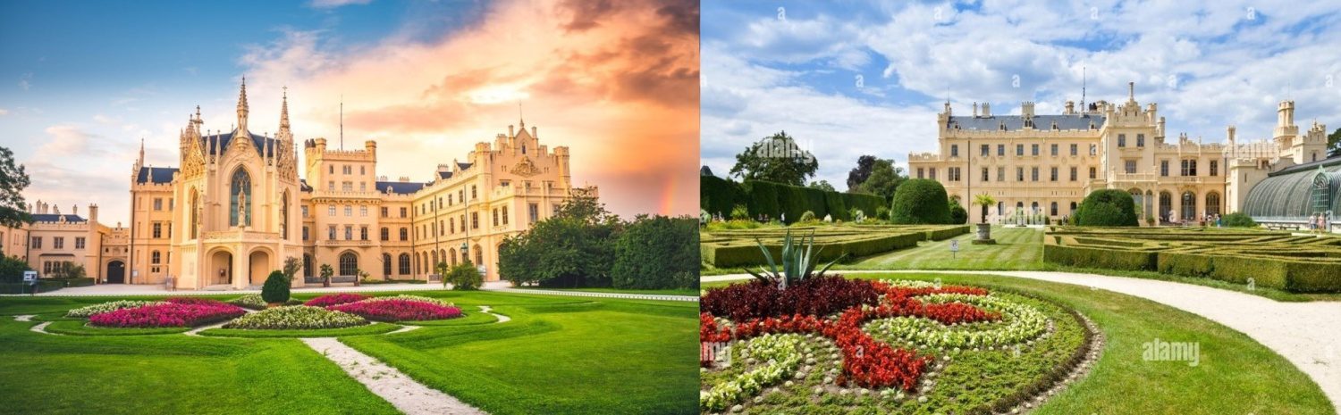 1. Zámek Lednice (UNESCO) = perla Lednicko-Valtického areálu, nádherný romantický zámek s rozsáhlým parkem na ploše 200 ha. Součástí parku jsou různé romantické stavby. Celý areál i se zámkem Valtice a s vodními plochami má rozlohu 20.000 ha, což je nejrozsáhlejší komponovaná krajina v Evropě vytvořená člověkem !